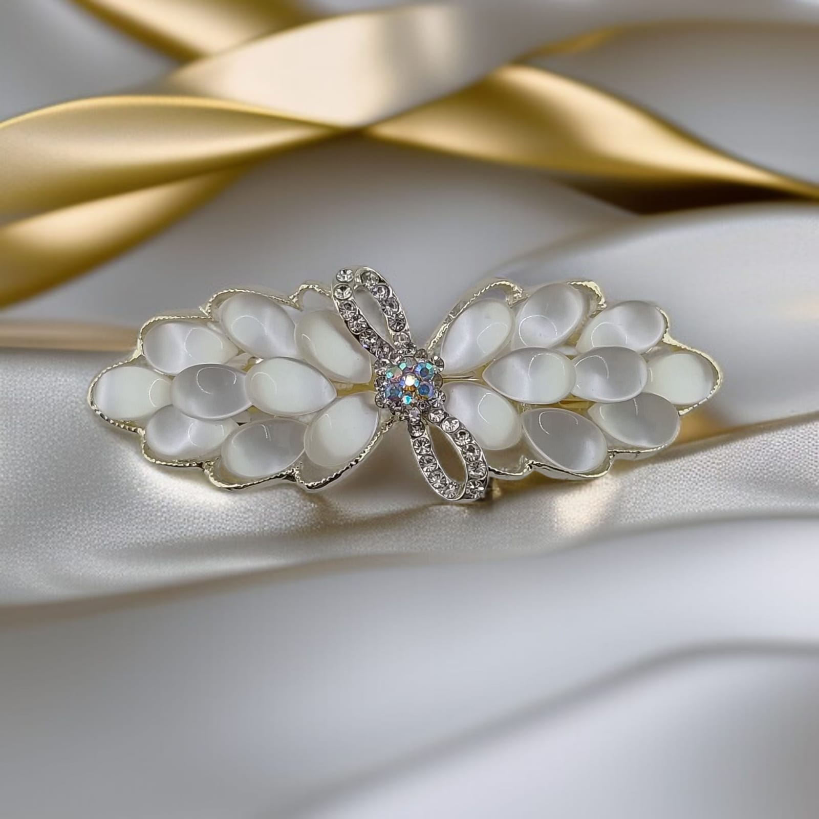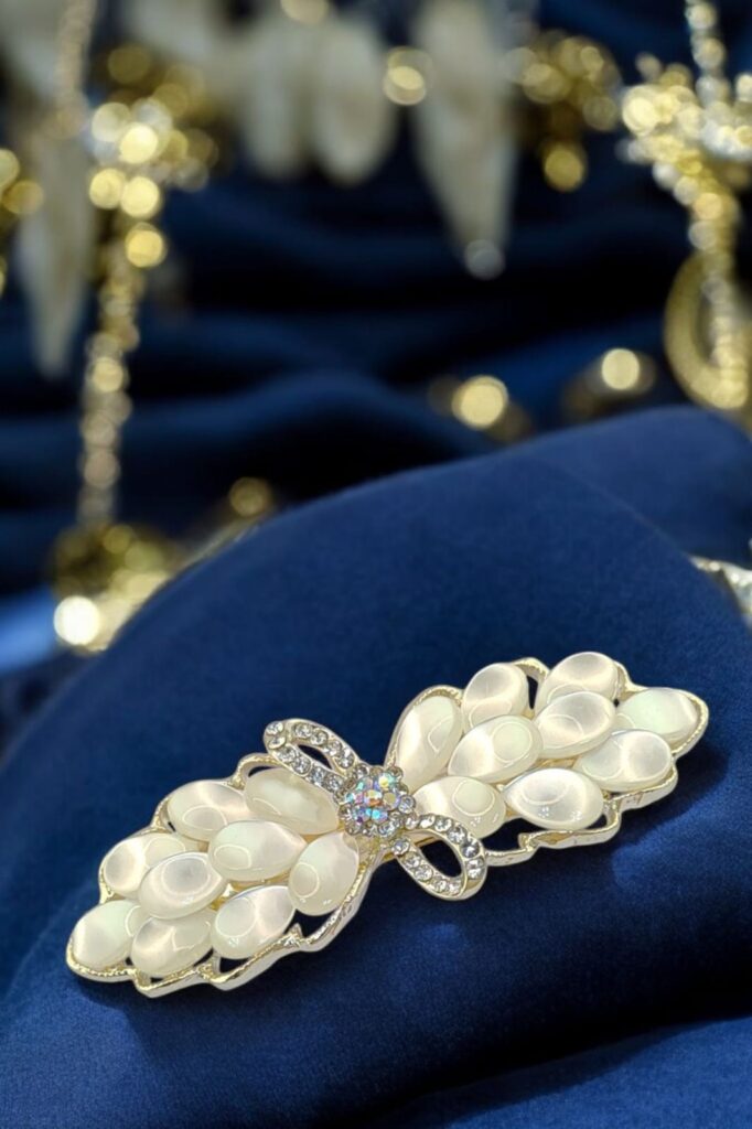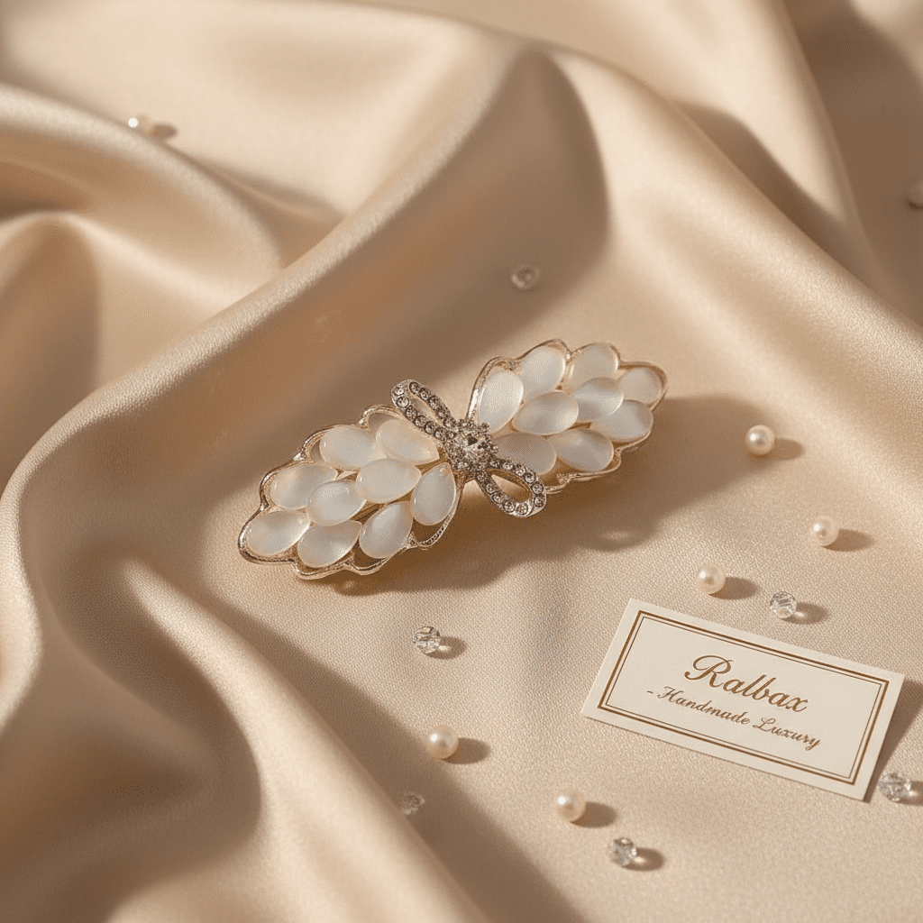 RALBAX Lys Saç Aksesuarı – Kelebek Tasarım İnci ve Kristal Taşlı Saç Tokası