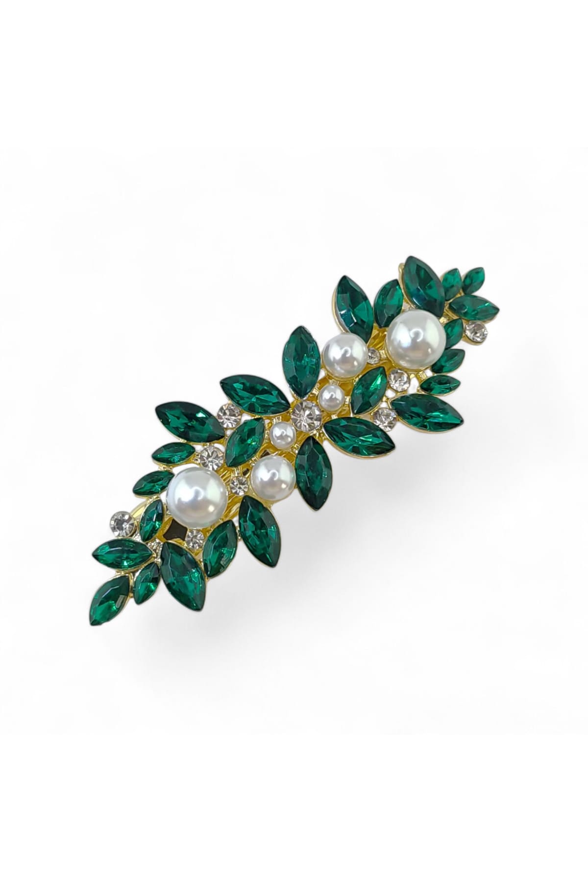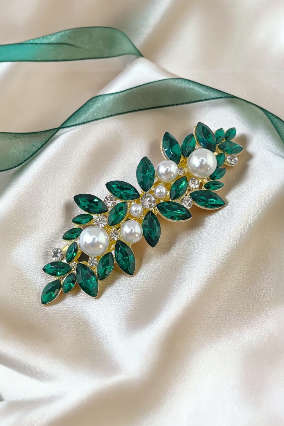Zümrüt Yeşil Kristal Taşlı İnci Detaylı Saç Tokası ile Doğal Lüks
