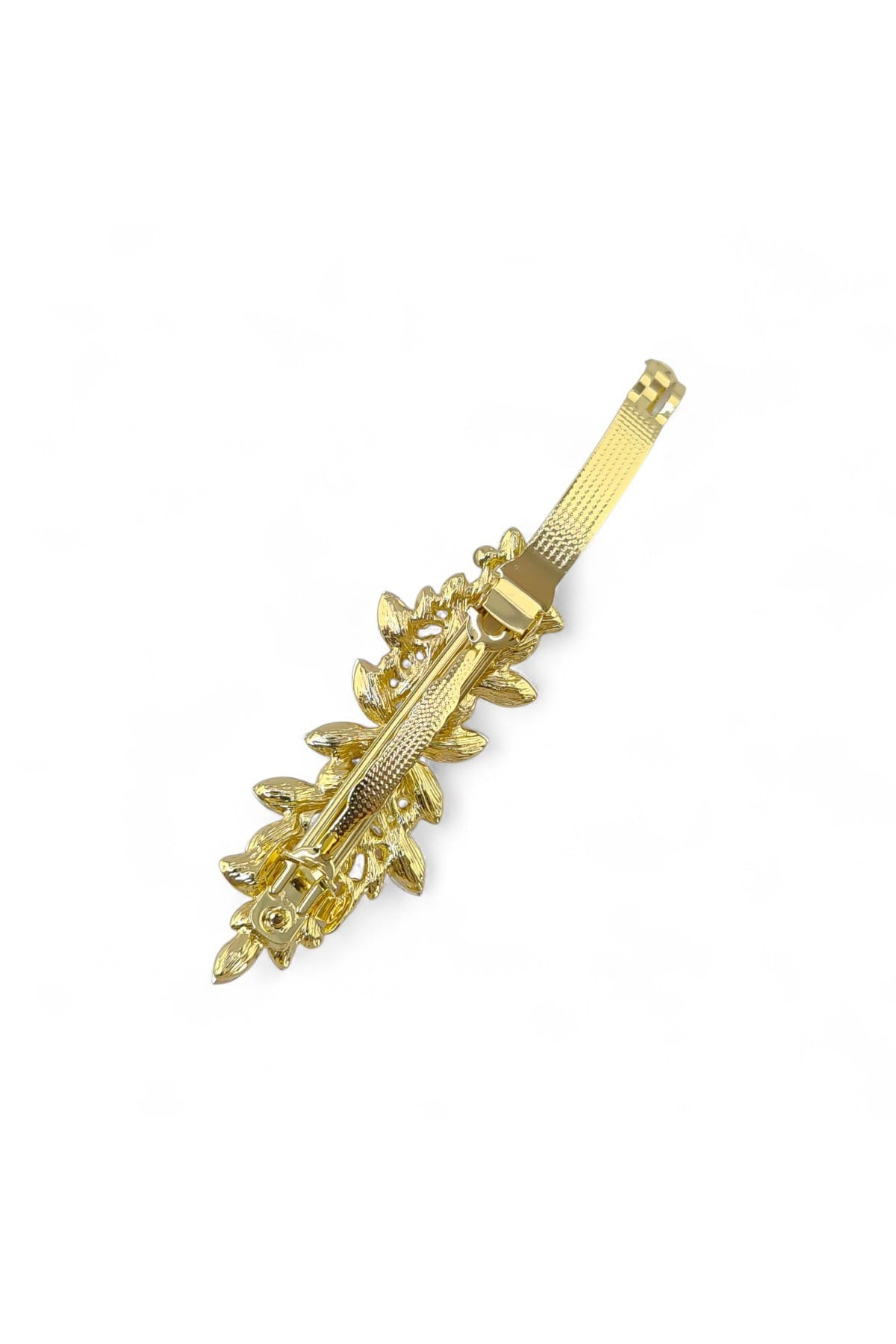 Zümrüt yeşil kristal taşlı inci detaylı saç tokası arayan kadınlar için doğanın en asil rengini ve klasik zarafeti bir araya getiren Ralbax Amaryllis, saç stilinize sofistike bir imza atar. Zümrüt yeşili kristallerin derin ve gizemli ışıltısı ile inci detayların saf beyazlığı, altın tonlu gövde üzerinde kusursuz bir dengeyle buluşuyor. Yaprak formundaki marquise kesim taş dizilimiyle Amaryllis, yalnızca bir saç tutucu değil, stilinizi tamamlayan iddialı ve mücevher değerinde bir aksesuar parçasıdır.