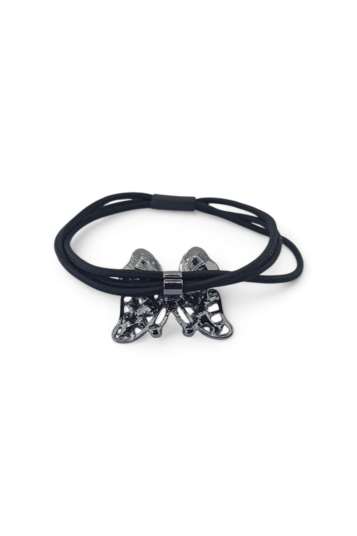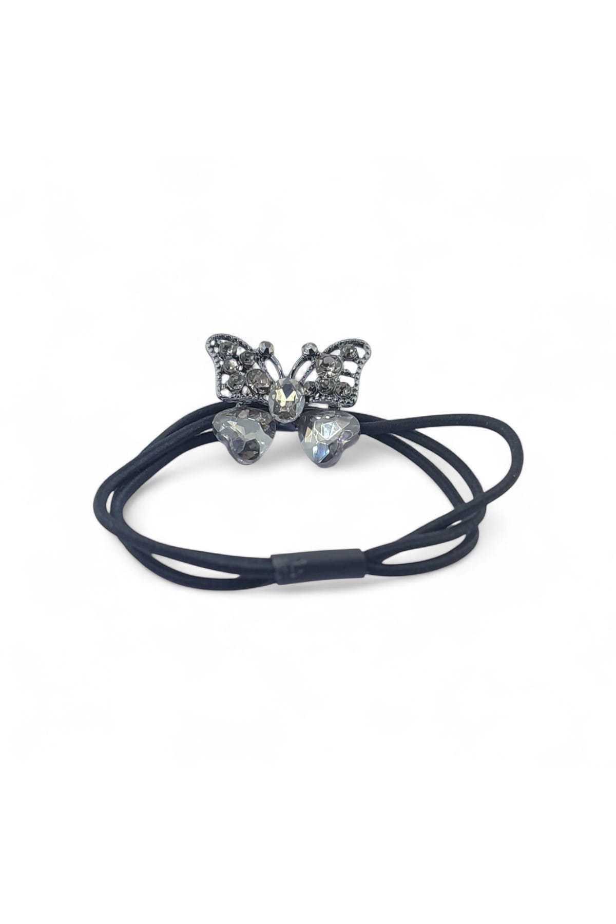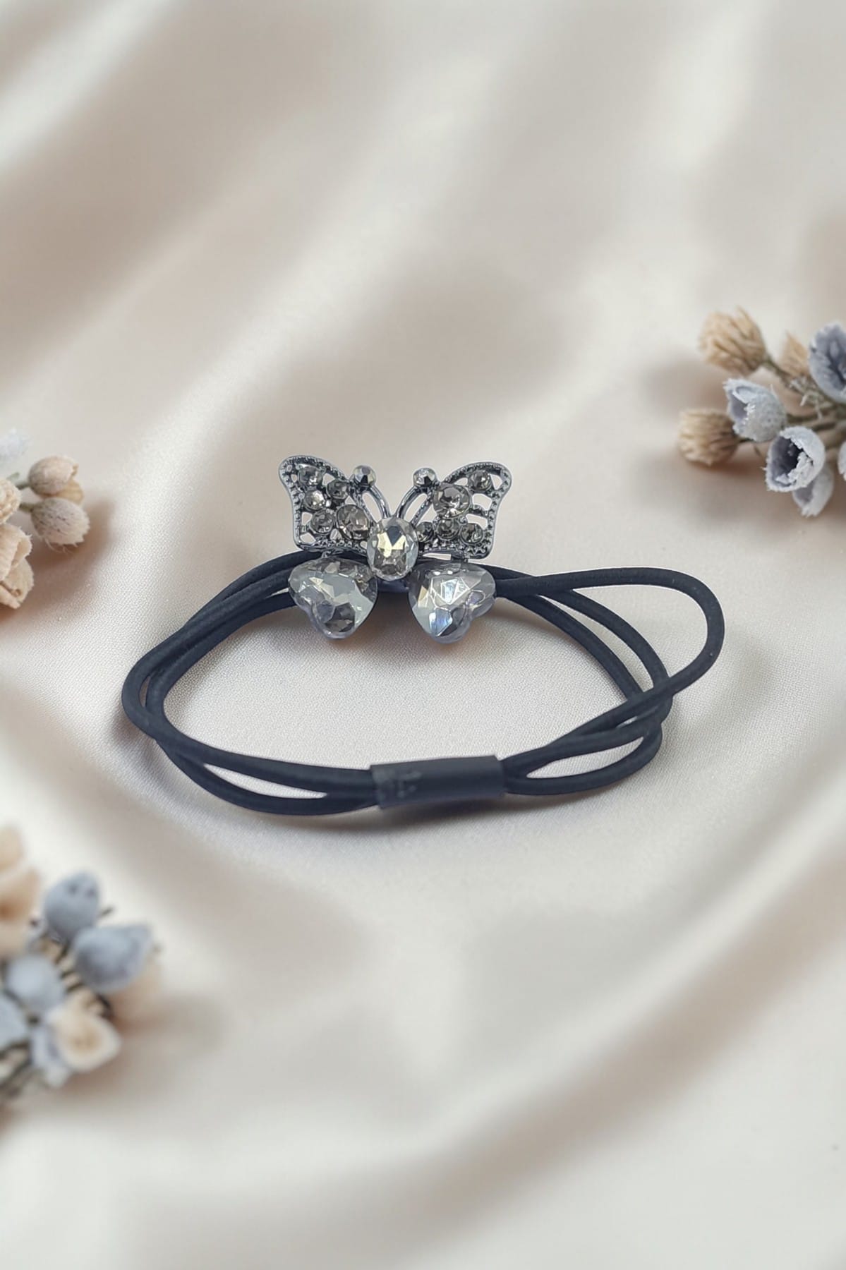 Zarif Kelebek ve Antrasit Uyumu: Kalp kesim alt kanat detayları ve füme kristallerle zenginleştirilen kelebek figürü, saçlarınıza modern ve romantik bir hava kazandırır.