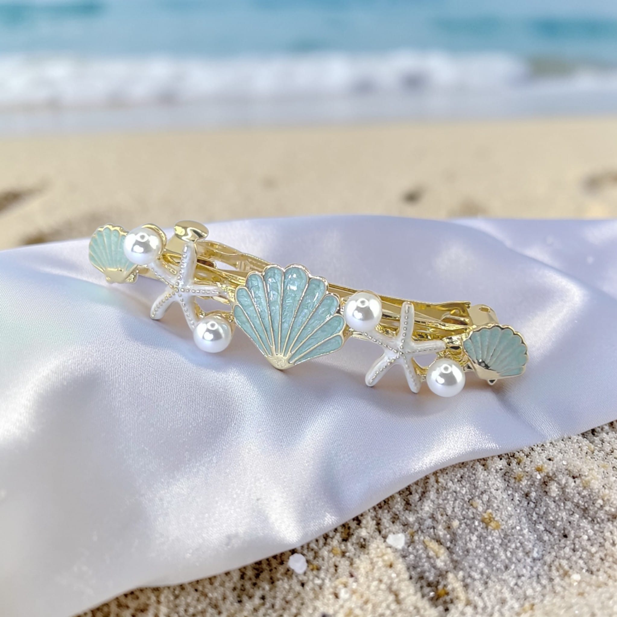 Deniz Kabuğu ve Yıldızı Tasarımlı İnci Detaylı Saç Tokası ile Yaz Esintisi