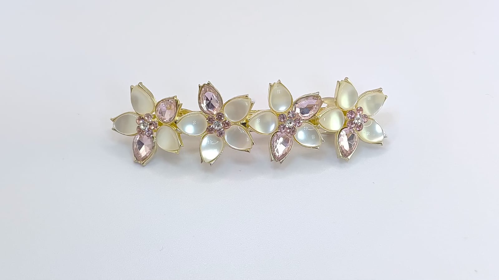Pembe Kristal Taşlı Çiçek Saç Tokası ile Romantik Zarafet